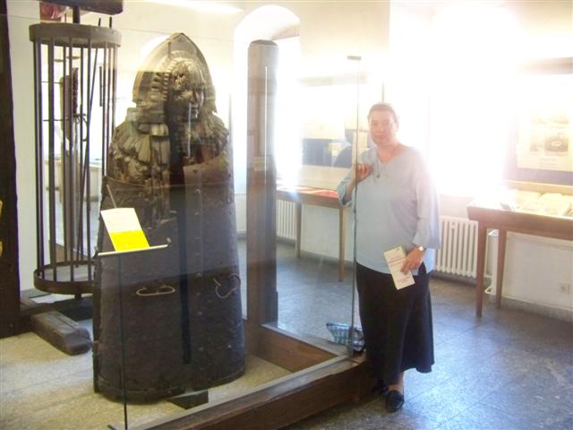 Mein Urlaub 2011 führte mich nach Bayern. Hier habe ich die Nürnberger Lochgefängnisse besichtigt, hier sieht man die Folterkammer, die den Aufzug, Daumenschrauben und die Streckbank beinhaltet. Links neben mir sieht man den Stein, den man den Gefolterten an die Füße hängte, wenn man sie mit nach hinten verdrehten Armen aufzog.