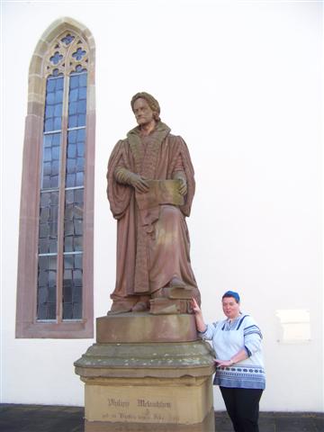 Philipp Melanchthon wurde in der Brettener Stiftskirche getauft. Vor der Kirche steht ebenfalls sein Denkmal: