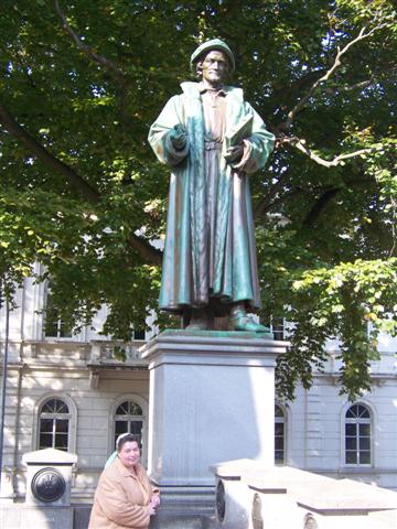 Zu seiner Rechten steht das Denkmal seines besten Freundes: Martin Luther.